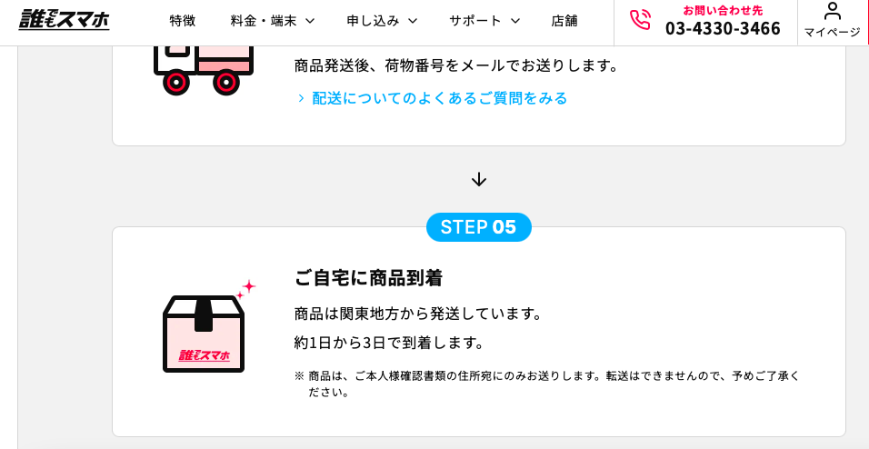 誰でもスマホは、およそ1〜3日で商品が到着します。